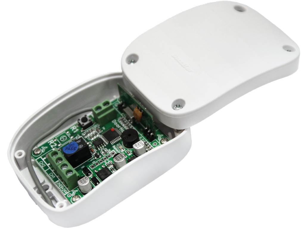 Внешний приемник DHRE-1 представляет собой компактный блок в собственном защищенном корпусе, внутри которого находится радиоприемник, настроенный на частоту 433 МГц, и плата с релейным выходом. Принцип его работы прост и эффективен: