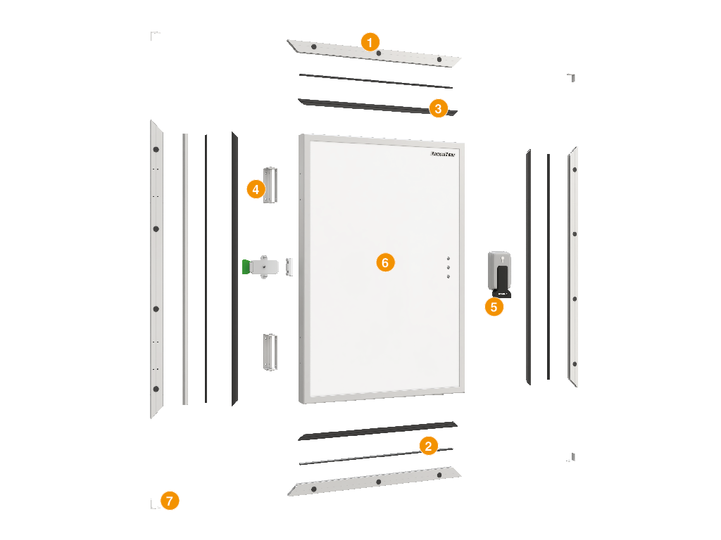 Утепленное Полотно (Крышка): Основа люка — это крышка, изготовленная из сэндвич-панели толщиной 80 мм. Панель состоит из двух стальных листов и внутреннего слоя из плотного пенополиуретана (PUR). Такая толщина и материал наполнителя обеспечивают превосходную теплоизоляцию, сопоставимую со стеновыми панелями самой камеры. Это гарантирует, что люк не станет "мостиком холода".