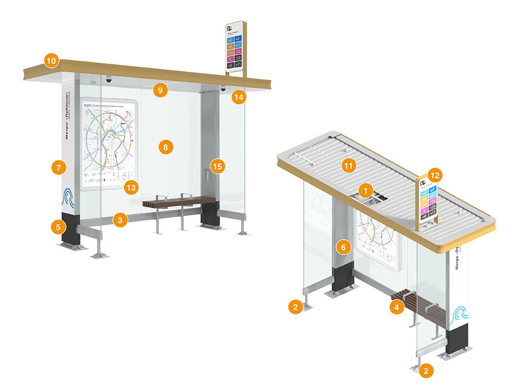 Остановочный павильон предназначен для установки в местах посадки-высадки пассажиров в пунктах с низким пассажиропотоком и узким тротуаром. Служит для создания комфортных условий для жителей города во время ожидания общественного транспорта. Конструкция рассчитана для установки в крупных городах и населенных пунктах. Павильон отличается долгим сроком службы и высокой ремонтопригодностью.