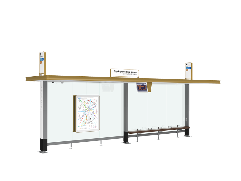 В остеклении конструкции используется закаленный триплекс, который в случае повреждения не осыпается, а покрываясь мелкими трещинами, остается в прежнем положении в раме остановочного павильона. Кроме того, павильон оборудован системой видеонаблюдения.