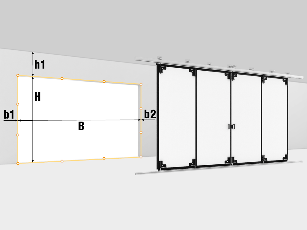 | b1, мм Левый пристенок | (B + 60) + 385 (без привода), (B + 60) + 835 (с приводом) |