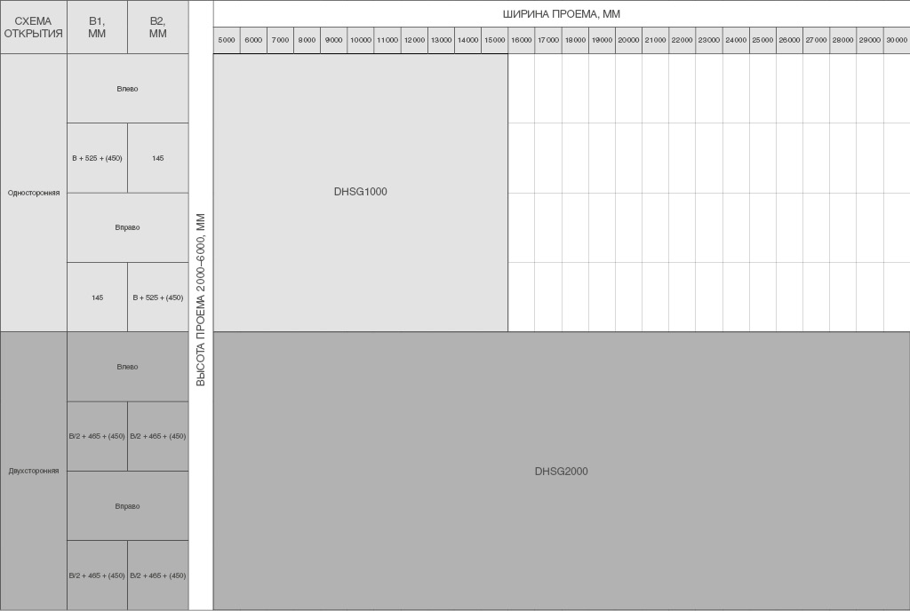 | B, мм Ширина проема | 5 000–30 000 |