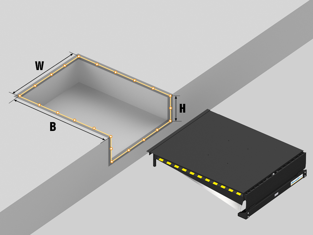 - Идеальное решение для модернизации и реконструкции: Платформу DLHHC можно установить на абсолютно любом существующем складе, даже если он изначально не был предназначен для современных перегрузочных операций. Монтаж осуществляется накладным способом, непосредственно на фасад или край существующей бетонной рампы. Это позволяет дооснастить любой объект, превратив его в современный логистический узел. Время установки при этом сокращается с нескольких недель (как в случае с формированием приямка) до одного, максимум двух, рабочих дней. Это означает минимальный простой склада и максимальную скорость модернизации.