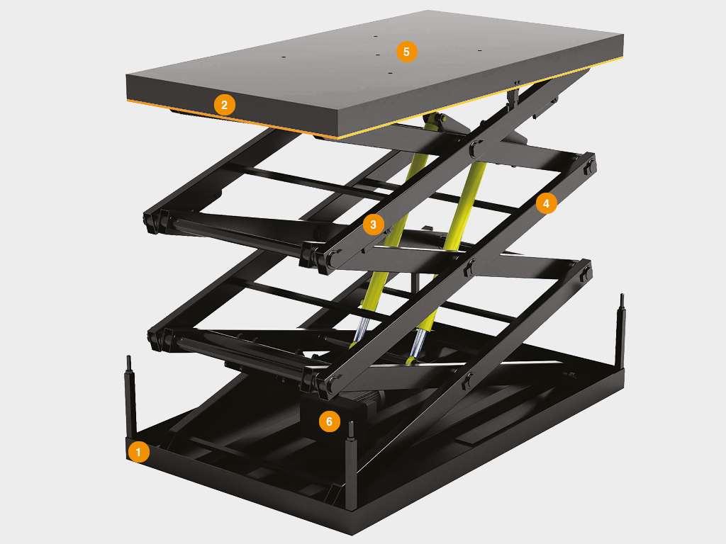- Система синхронизированных гидравлических цилиндров: Несколько мощных гидроцилиндров работают абсолютно синхронно, что достигается за счет точной настройки гидравлической системы. Это обеспечивает идеально ровный, горизонтальный подъем платформы без малейших перекосов, что критически важно при работе с чувствительными к наклону грузами.