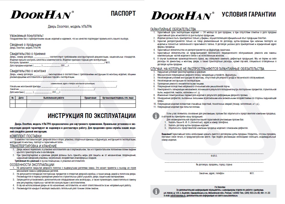 9. Мы обязуемся по нашему выбору произвести устранение выявленных дефектов, заменить дефектную продукцию на исправленную или возместить затраты на приобретение дефектной продукции. Мы не берем на себя расходы по демонтажу и монтажу двери, а также транспортные расходы, кроме случаев, специально оговоренных в договоре купли-продажи.