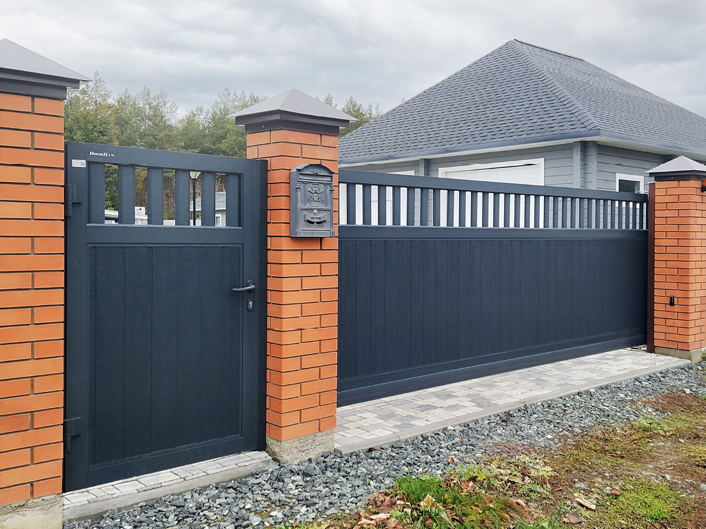 Идеальное совпадение: единый стиль вашего дома. Главное преимущество ворот SLG-A — это возможность создать абсолютно гармоничный архитектурный ансамбль. Мы можем изготовить для вас откатные ворота, калитку и гаражные ворота, используя сэндвич-панели абсолютно одинакового дизайна, цвета и фактуры. Вы можете выбрать любой тип поверхности: от гладкой до имитации дерева, десятки стандартных цветов по каталогу RAL и различные типы рисунка панелей. Ваш дом будет выглядеть так, как было задумано в лучших архитектурных проектах.