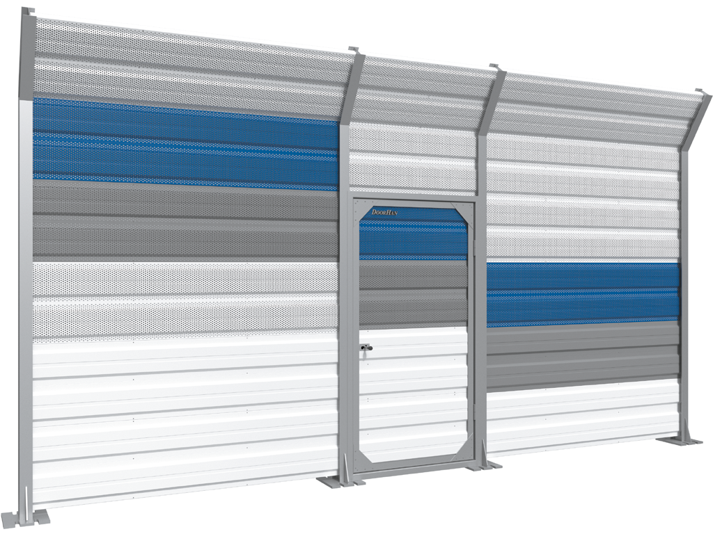 Shovqindan himoya ekranlari — bu turar-joy zonalari va ish joylarini avtomagistrallar, temir yo'llar va sanoat korxonalari shovqinidan himoya qilish uchun mo'ljallangan kuchli statsionar to'siqlardir. Biroq, har qanday uzun to'siq funktsional o'tish joylariga muhtoj: hududga xizmat ko'rsatish, xodimlarning o'tishi, shuningdek, avariya holatlarida evakuatsiya qilish uchun. Akustik ekranda oddiy teshik yaratish mumkin emas, chunki bu "ovoz yorilishi"ni keltirib chiqaradi va butun konstruksiyaning samaradorligini yo'qqa chiqaradi. Aynan shu vazifani hal qilish uchun maxsus DoorHan ochiladigan shovqindan himoyalovchi eshikcha ishlab chiqilgan — bu to'siqning ovoz izolyatsiyasi xususiyatlarini to'liq saqlagan holda qulay o'tishni ta'minlaydigan texnologik elementdir.