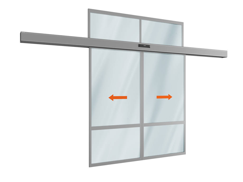 AD-SP drayveri uchun avtomatik suriluvchi eshik komplekti (ikki harakatlanuvchi yengil yaratmalar va yuqorida framuga)