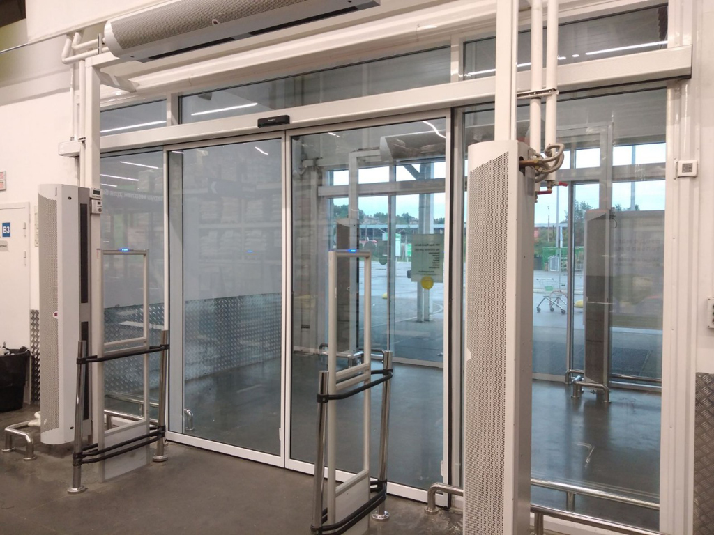 AD-SP privodi uchun avtomatik suriluvchi eshik komplekti (ikki harakatlanuvchi va ikki qotirilgan "antipanika" eshik qanotlari bilan)