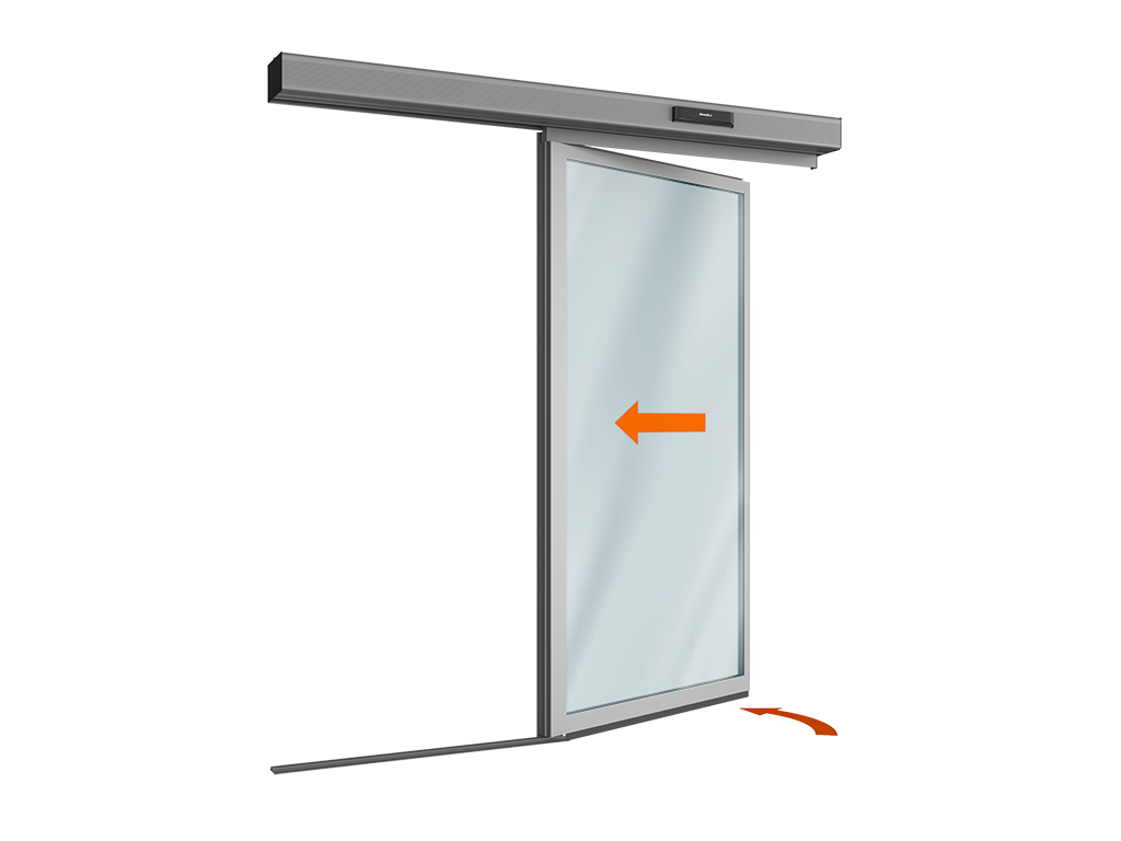 AD-SP privodi uchun "antipanika" tizimidagi avtomatik surilma eshik komplekti (bitta harakatlanuvchi "antipanika" eshik qanoti)