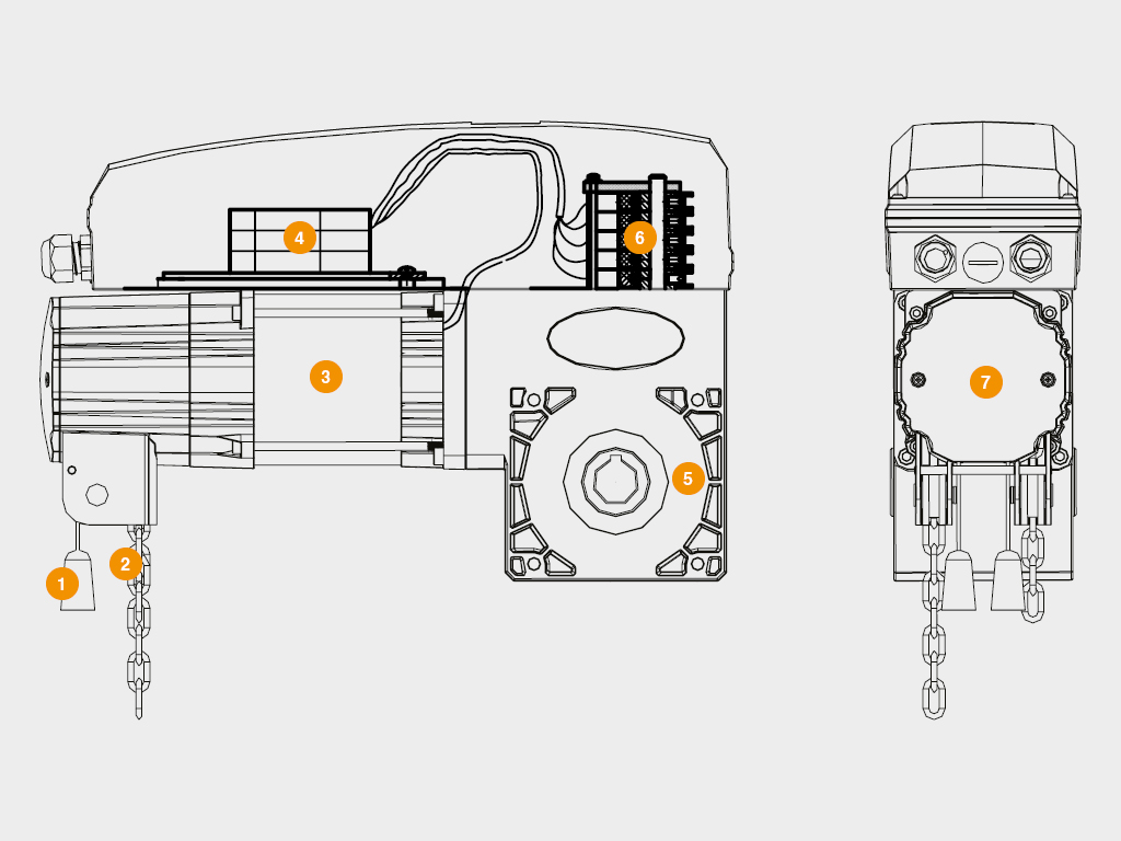 - Zanjir bilan qo'lda boshqarish: Elektr energiyasi o'chirilgan taqdirda, uzunligi 8 metr bo'lgan o'rnatilgan zanjirli reduktor yordamida pol darajasidan darvozalarni qo'lda osongina ko'tarish yoki tushirish mumkin.