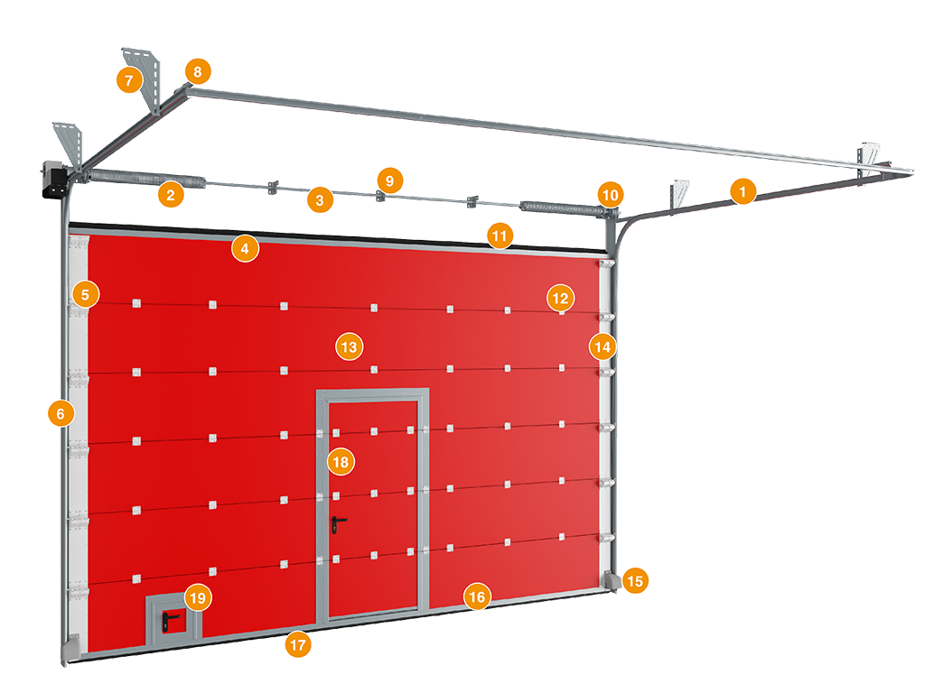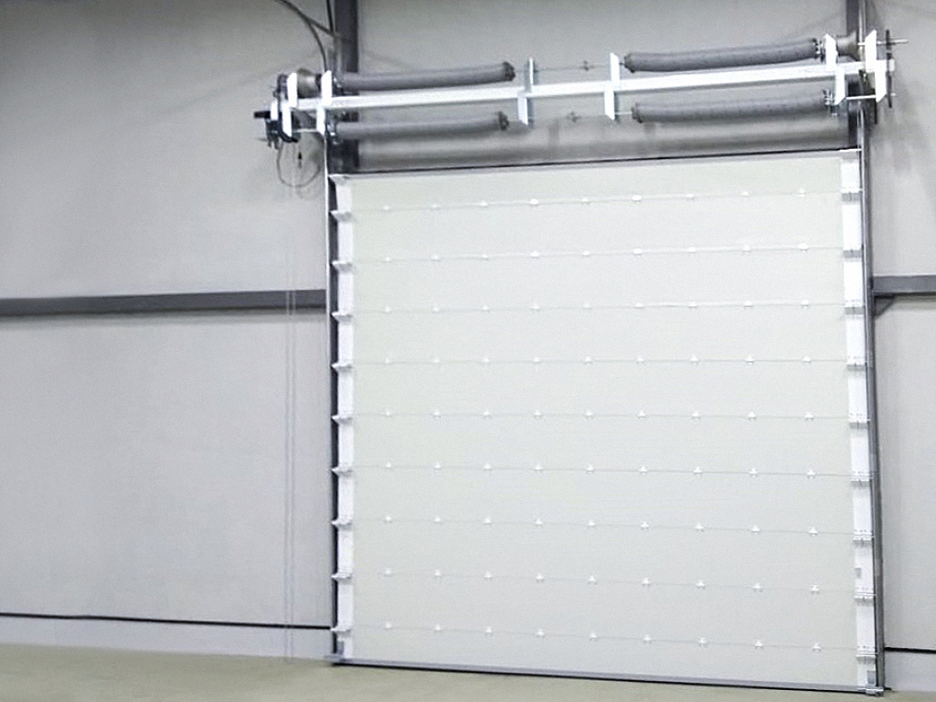 Olovga chidamli sendvich-panellardan yasalgan polotno: Darvoza polotnosi petlyalar bilan o'zaro bog'langan gorizontal seksiyalardan (sendvich-panellardan) iborat. Ushbu panellar uchun to'ldiruvchi sifatida yuqori haroratlarga bardosh beradigan va issiqlik nurlanishi uchun samarali to'siq bo'lib xizmat qiladigan zich yonmaydigan mineral vata xizmat qiladi.