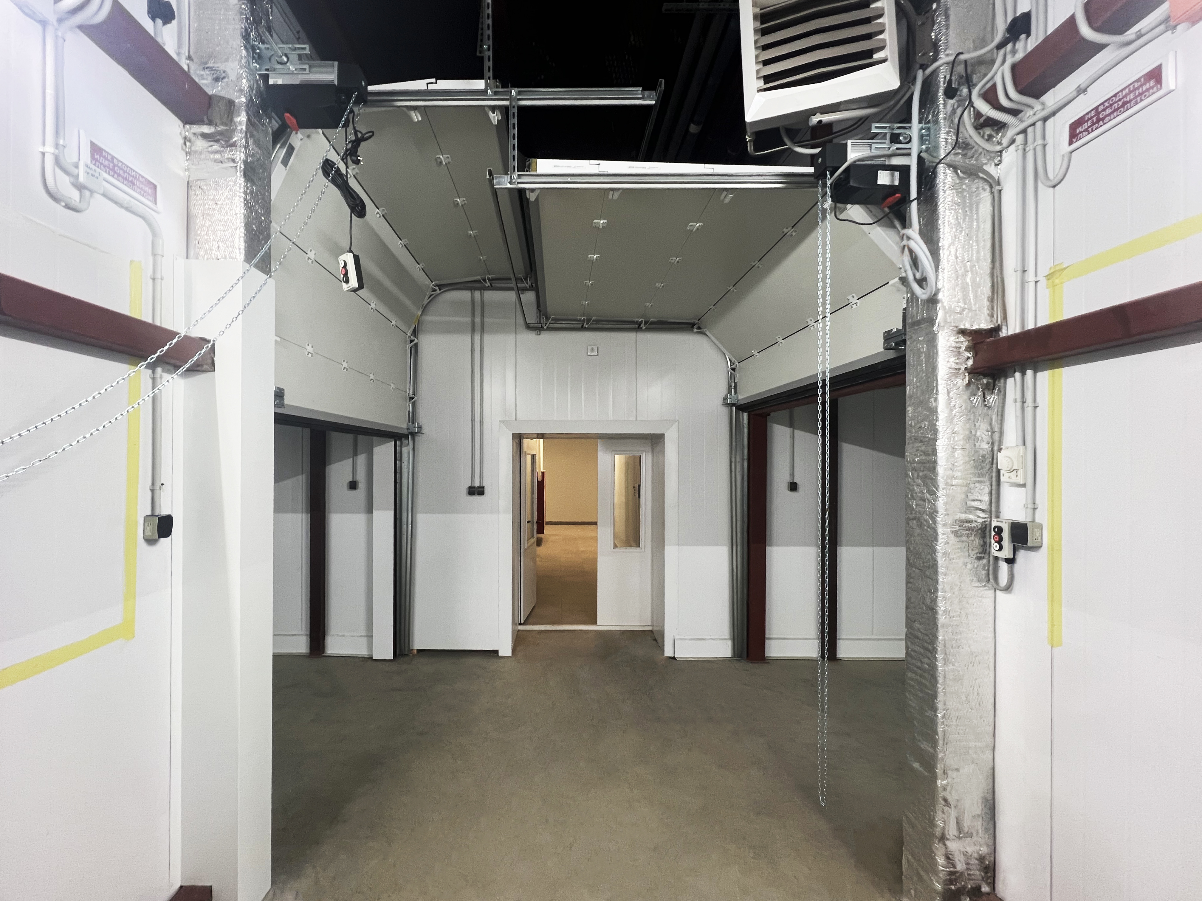 Ishlab chiqarish va omborxona xonalari: Uskunalar yoki stellajlarning zich joylashuvi ochiladigan darvozalarni o'rnatishga imkon bermaydigan joyda.