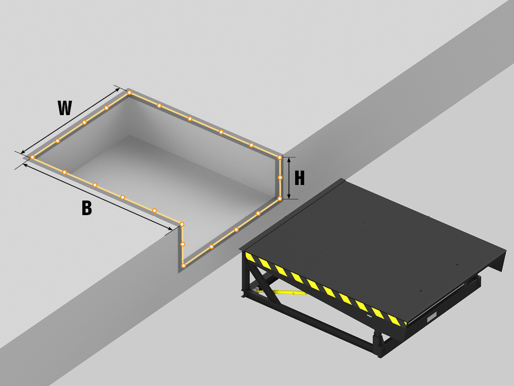- Ideal tekis pol: Ishlamaydigan, yig'ilgan holatda platformaning yuqori qopqog'i ombor poli bilan bir xil darajada bo'ladi. Bu texnikaning to'siqsiz harakatlanishi mumkin bo'lgan ideal tekis yuzani yaratadi va xonani tozalashga hech narsa xalaqit bermaydi. Darvoza oldidagi maydon to'liq bo'sh qoladi.