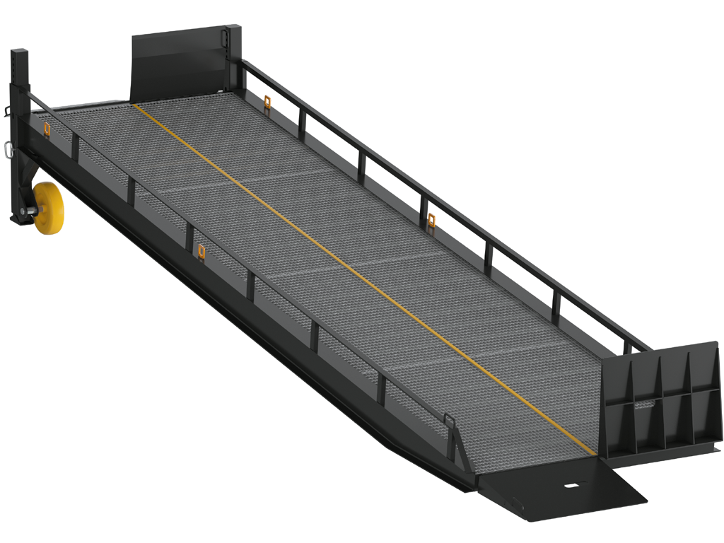 - "Pandusdan kuzovga" ishlash uchun ideal: RM rampasining asosiy va eng muhim maqsadi — omborning mavjud beton rampasi chetini avtomobil kuzovi poli bilan birlashtirish. U gorizontal bo'shliqni ham, vertikal balandlik farqini ham samarali qoplaydi va qo'l gidravlik aravachalari (roxlyalar) hamda elektr shtabelerlar kabi yengil omborxona texnikasi uchun silliq, choksiz va xavfsiz yo'lni yaratadi. Bu qutilar va palletlarni xavfli va sekin qo'lda qayta yuklashdan voz kechish imkonini beradi.