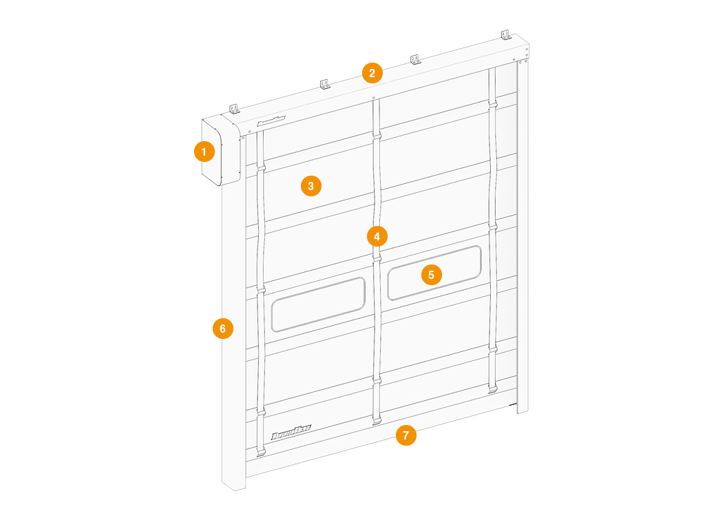 Fundamental mustahkamlik: qattiqlik qovurg'ali buklanadigan konstruksiya. Egiluvchan rulonli darvozalardan farqli o'laroq, SpeedFold SDFS "garmoshka" tamoyili asosida ishlaydi. Mustahkam PVXdan yasalgan polotno maxsus kamarlar bilan o'zaro bog'langan kuchli gorizontal po'lat profillar (traversalar) bilan mustahkamlangan. Ochilganda kamarlar valga o'raladi va polotno shift ostida ixcham tarzda buklanadi. Ushbu texnologiya asosiy afalliklarni beradi: