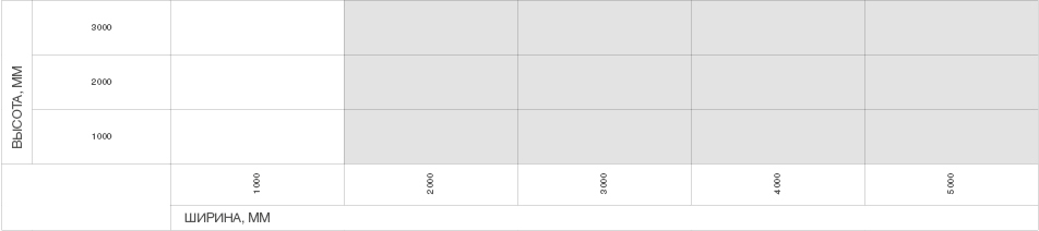 | Ширина, мм | 950–2 450 (har bir eshik qismi) |